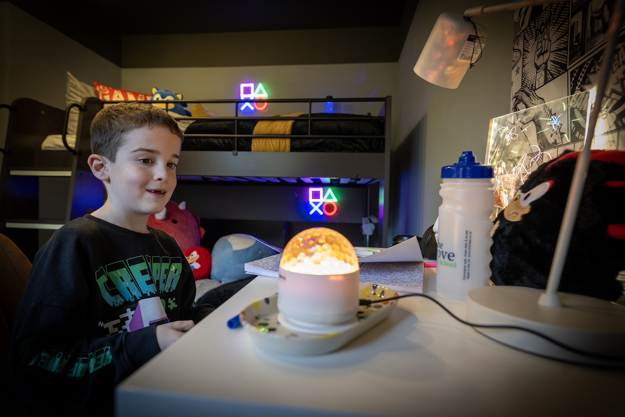 The showhome’s design had been inspired by Louie, who has Autism, and features a sensory room which includes specific accessories suited to someone living with Autism including soft-textured cushions, noise-cancelling headphones and an LED drawing pad.