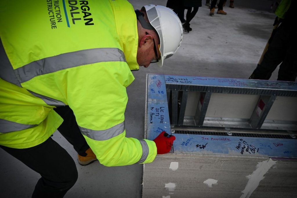 To commemorate the successful installation of the main structure, key stakeholders gathered on Friday 28 November to sign a commemorative steel beam.
