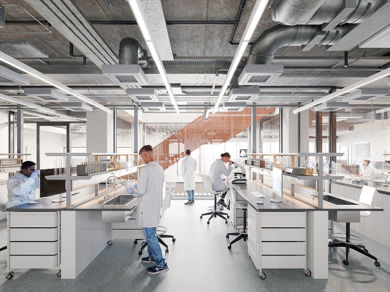 The new life sciences building designed by AJ100 practice, TODD Architects will extend the main Belfast campus with a new purpose-built facility over 6no. levels. The concept will bring together leading research groups including industry, academics and researchers to develop med-tech wearables within an innovation hub envisaged as a national exemplar of knowledge exchange and inspiration.